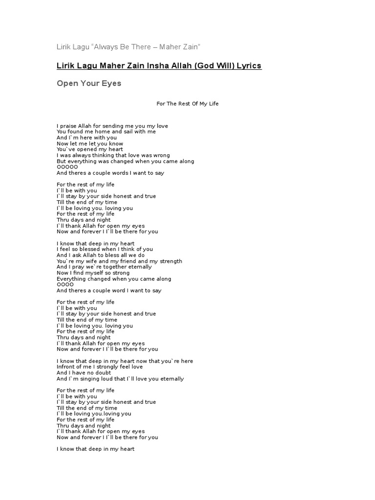 Doc Lirik Lagu Maher Zain Fitriyah Istianah Academia Edu