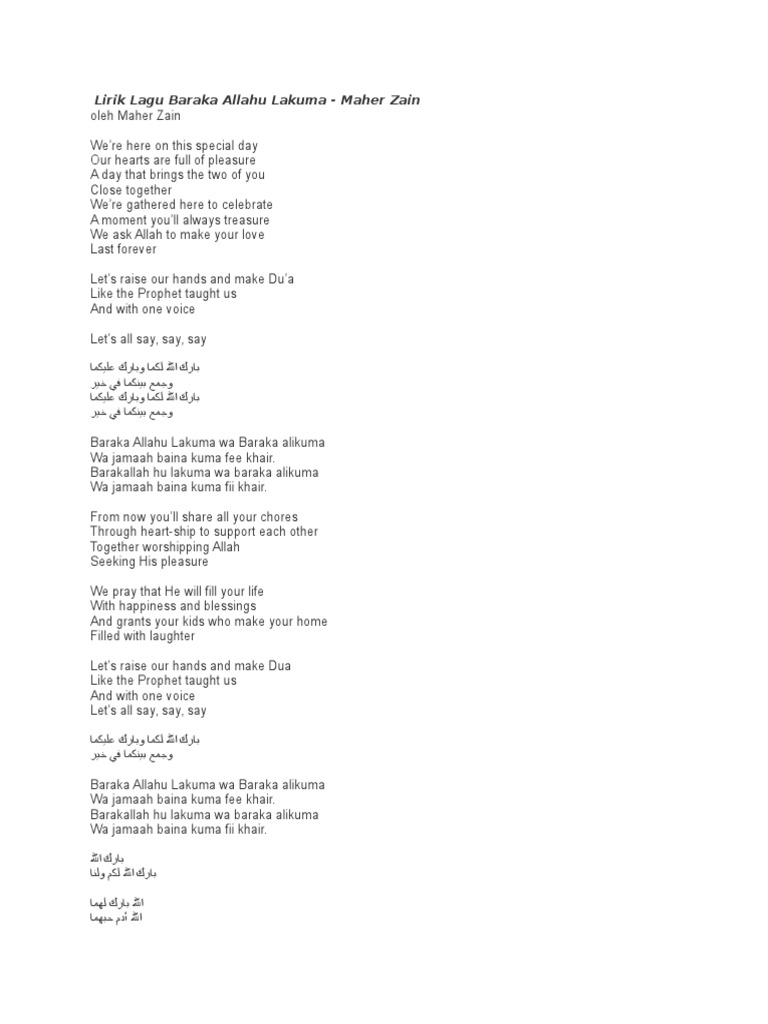 Mudah-mudahan isi postingan Artikel Islami Artikel Terjemahan yang. Terima kasih telah membaca terjemahan lirik lagu lirik BARAKALLAH-MAHER. A day that brings the two of you.